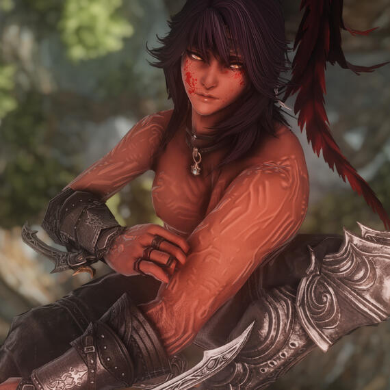 | Addition Details: | Artistic Scars cover his body from head to toe. They were clearly mad in a pattern and design. Always seen with a hawk on him or near by. When close to Bazj, one can detect the hint of pine and honey to his scent. |